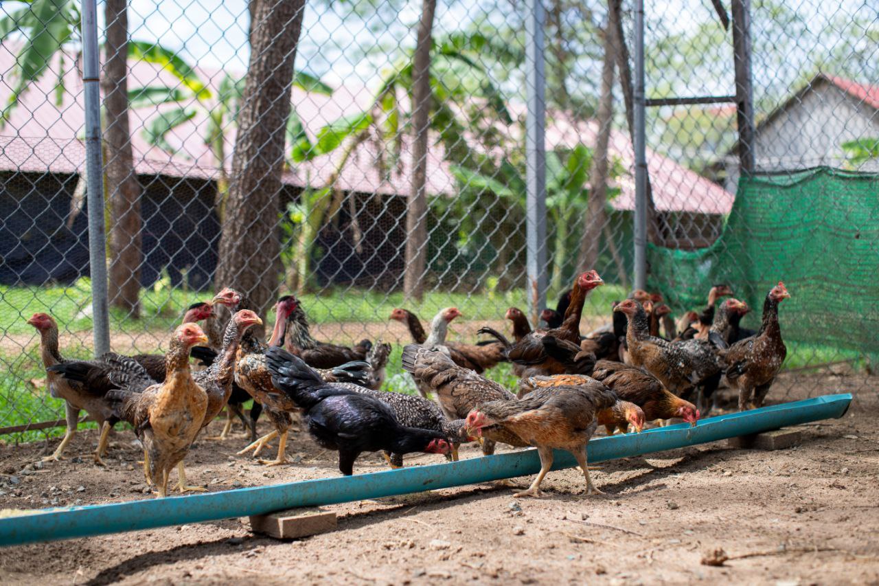 ដោយឡែកសម្រាប់ការចិញ្ចឹម និងការឱ្យចំណីប្រចាំថ្ងៃ ត្រូវបានម្ចាស់កសិដ្ឋានខាងលើប្រាប់ឱ្យដឹងថា ដើម្បីកាត់បន្ថយការចំណាយ អ្នកចិញ្ចឹមគួរតែដាំដំណាំផ្សេងៗដើម្បីឱ្យមាន់ស៊ីចៀសវាងការប្រើចំណីសុទ្ធដែលត្រូវចំណាយច្រើន។ ជាក់ស្ដែង លោកផ្ទាល់ ប្រើចំណីសម្រេចលាយជាមួយនឹងដំណាំដែលលោកដាំបាន ដូចជា ត្រកួន ផ្ទី ជាដើម។
